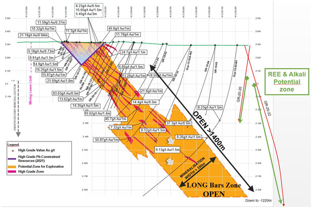 Figure 1. Mineralized gold zone and potential mineralized REE and Alkali Metal zone
