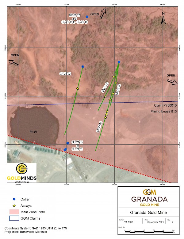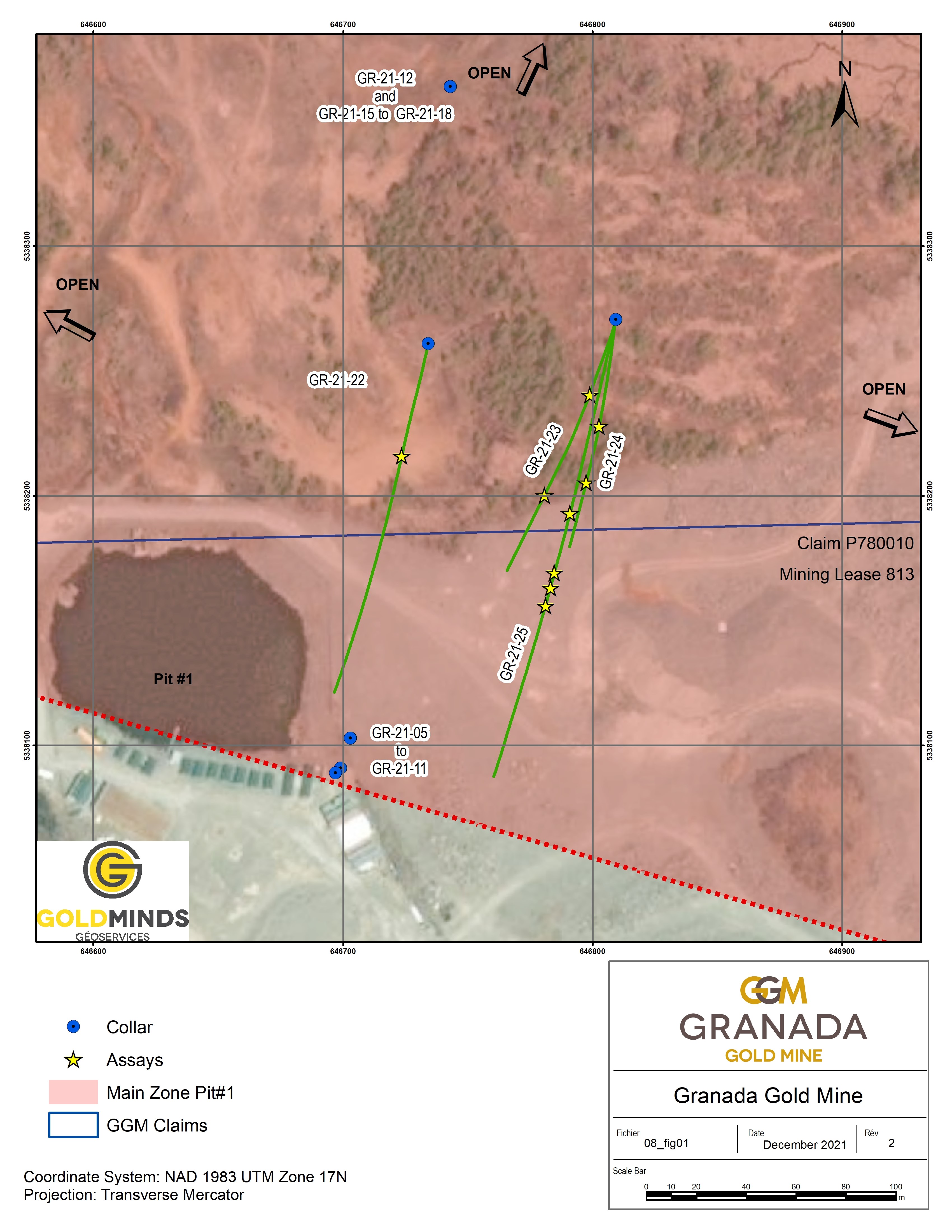 Rouyn Noranda, Q.C., December 6, 2021 - Granada Gold Mine Inc. (TSXV: GGM) (OTC: GBBFF) (Frankfurt: B6D) (the “Company” or “Granada”) is pleased to announce additional results from its on-going drill program at its Granada Gold project with multiple new gold assays from its GR-21-22, GR-21-23, GR-21-24 and GR-21-25 drill holes with grades up to 31.30 g/t over 1.00m, 11.70 g/t over 1.00m, and 10.05 g/t over 0.50m.