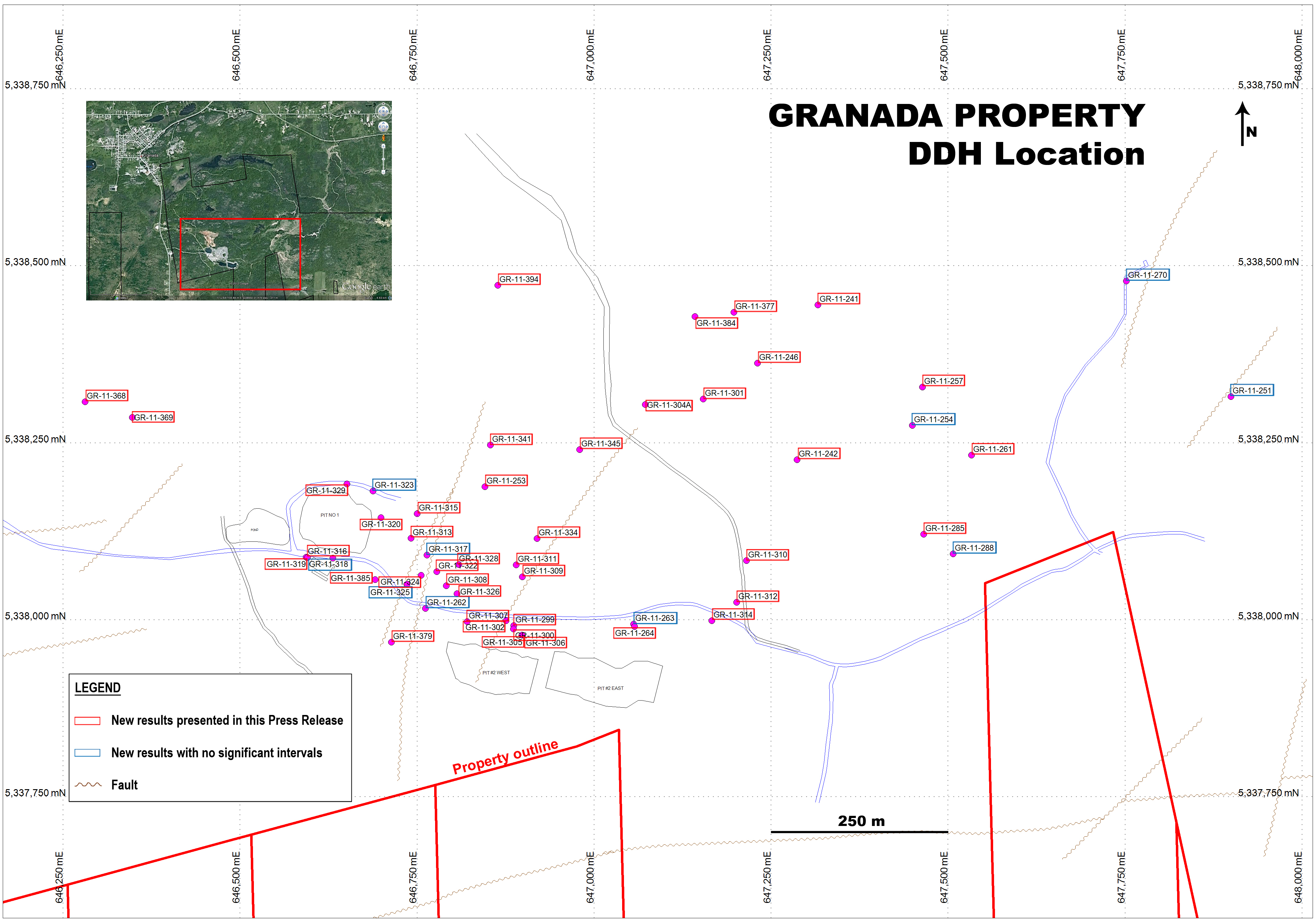 Gold Bullion Development Corp. (TSXV: GBB) (OTCPINK: GBBFF) (the “Company” or “Gold Bullion”) is pleased to announce the last set of results from the backlogged drill data at Gold Bullion’s Granada Gold Property. All the backlogged holes have now been logged and sampled.