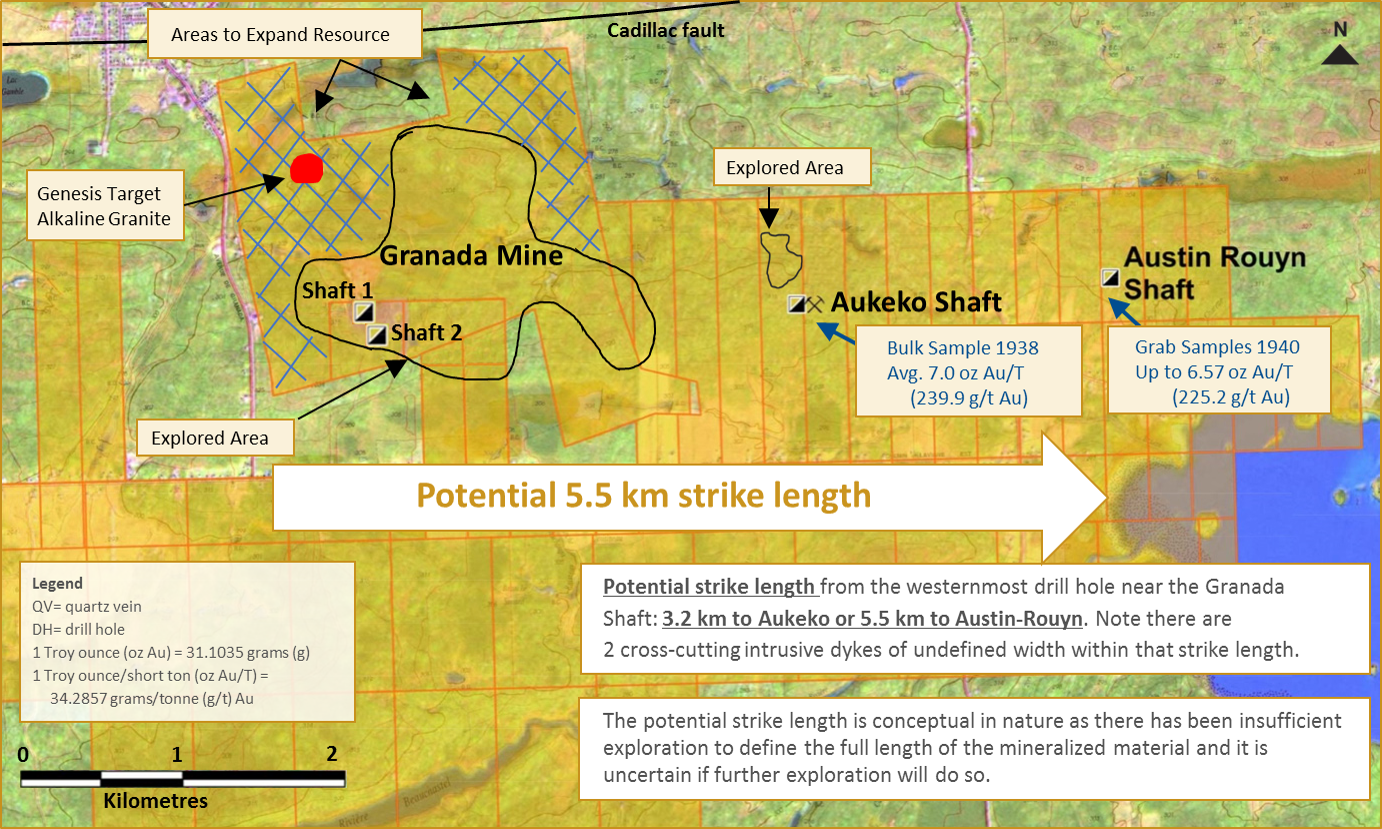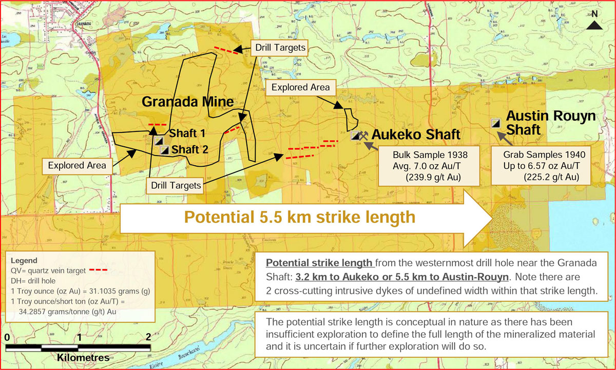 Granada Map showing Aukeko and Austin Rouyn Shafts