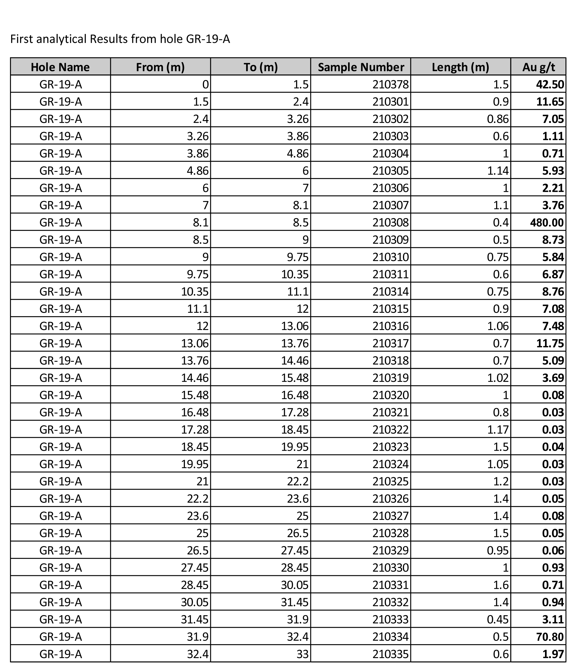 First Analytical rreuslts from hole GR-19-A