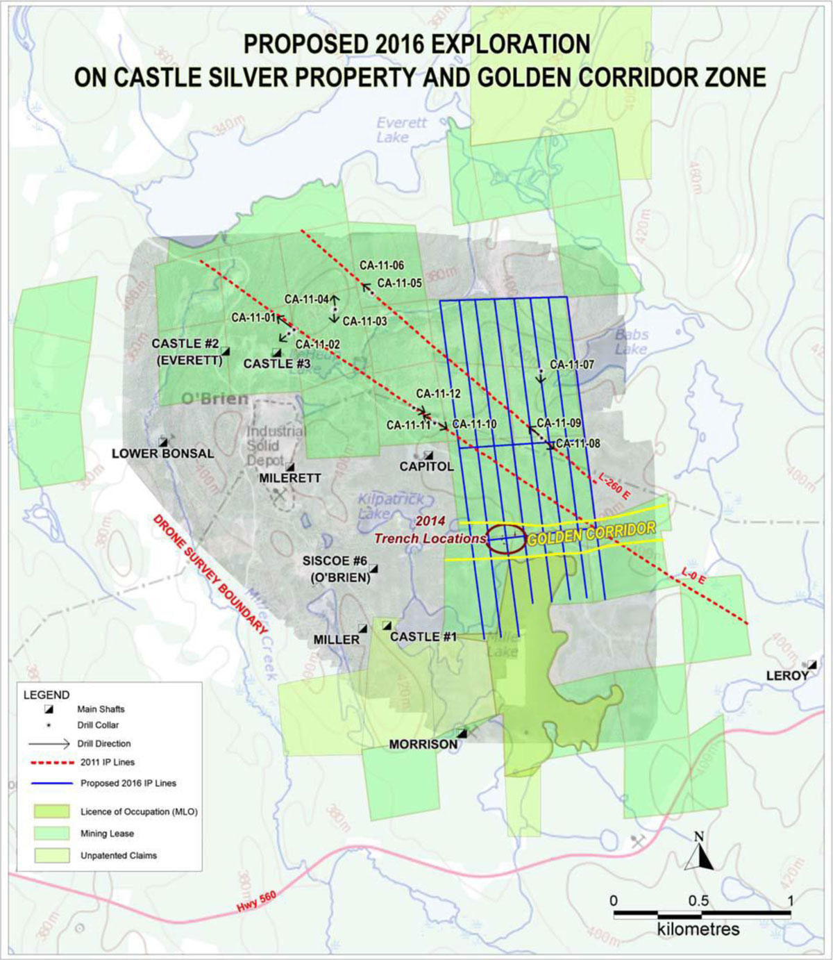 Le levé couvrira un secteur situé à l'extérieur et immédiatement à l'est des secteurs historiquement exploités, où près de 50 millions d'onces d'argent ont été produites durant les années 1900, principalement des mines Miller Lake O'Brien, Castle 3 et Capitol. De plus, environ 300 000 livres de cobalt ont été produites sur la propriété de la mine d'argent Castle au début des années 1900, et la récente découverte de minéralisation d'or et de cuivre rend la propriété encore plus attrayante pour l'exploration.